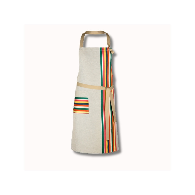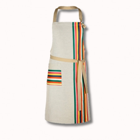 Le tablier réglable Mauléon, 78 x 90 cm, est en tissu naturel 70% coton et 30% lin, créé et confectionné dans notre atelier situé dans le Sud-Ouest, dans le respect des tissages traditionnels basques.