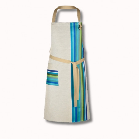 Le tablier réglable Mauléon, 78 x 90 cm, est en tissu naturel 70% coton et 30% lin, créé et confectionné dans notre atelier situé dans le Sud-Ouest, dans le respect des tissages traditionnels basques.