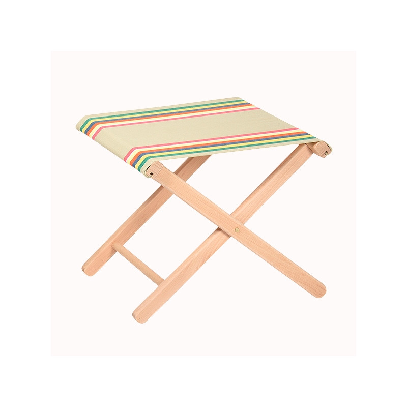 La toile prête à poser pour pliant pêche, 50 x 42 cm, finition ourlé de 5 cm et deux retours pour fixer les embouts en bois, est créée et imaginée par nos stylistes et tissée dans la vraie tradition des toiles basques.