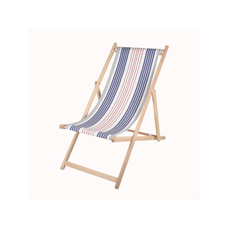 Toile à transat outdoor prête à poser, dimensions 118 x 42 cm, finition ourlée 5 cm avec 2 retours pour embouts en bois.