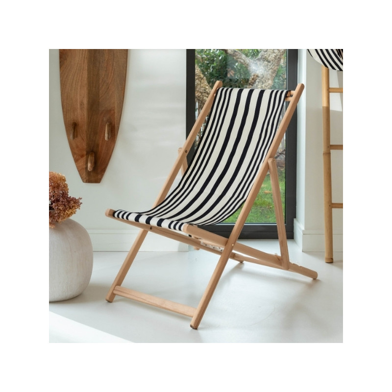 Icône de l’art de vivre en extérieur, la toile à transat Adour Noir revisite la chilienne traditionnelle avec un style graphique et intemporel. Ses rayures noir profond et écru, inspirées du linge basque, apportent une élégance naturelle à tous les espaces.