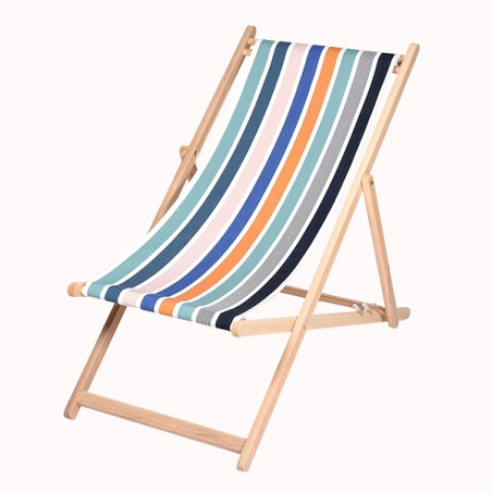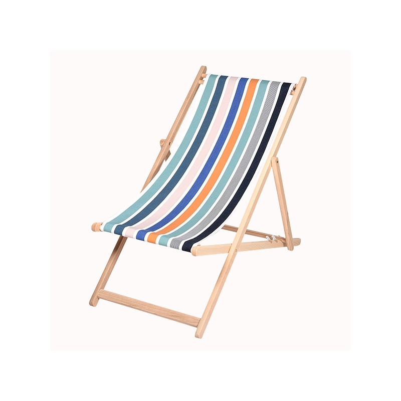 Toile à transat prête à poser, dimensions 118 x 42 cm, finition ourlée 5 cm avec 2 retours pour embouts en bois.