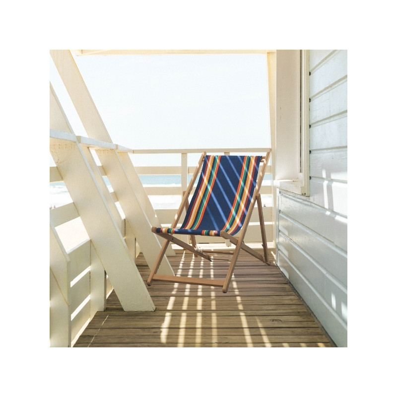 Ses dimensions 118 x 42 cm et sa finition ourlée de 5 cm avec retours permettent de la fixer facilement sur toute chilienne équipée d’embouts bois.