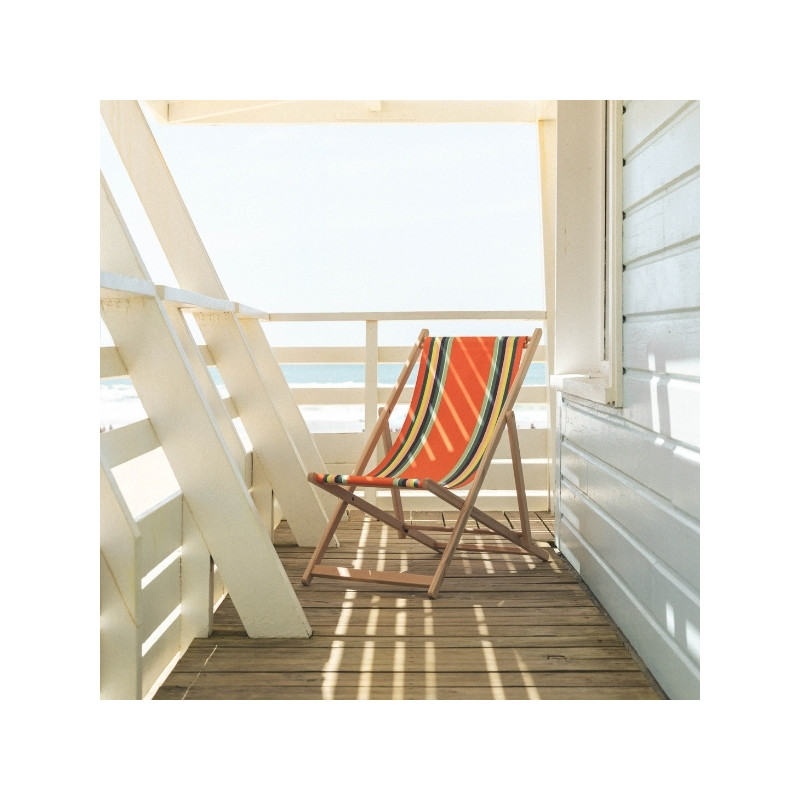 Toile à transat prête à poser, dimensions 118 x 42 cm, finition ourlée 5 cm avec 2 retours pour embouts en bois. 100% coton Oeko-Tex®, fabrication française certifiée.