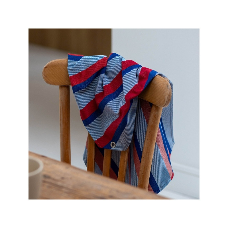 Le torchon Moustey 70 x 50 cm incarne parfaitement l’univers La Française d’Artiga : une élégance sobre, graphique et intemporelle, pensée pour sublimer les gestes du quotidien. Sa toile rayée raffinée, inspirée des codes textiles du Sud-Ouest, mêle harmonieusement les teintes bleu, rouge et écru pour une cuisine à la fois chaleureuse et contemporaine.