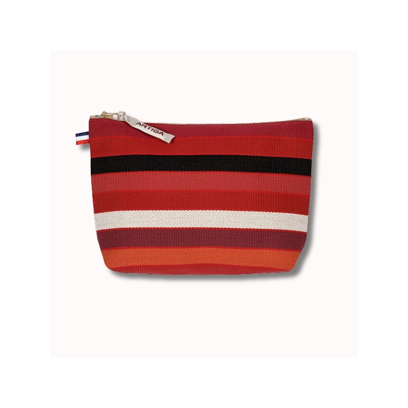 La trousse à maquillage LAAS ROUGE (13x18cm) est réalisée en toile espadrille, une matière résistante et emblématique de l’artisanat du Sud-Ouest.