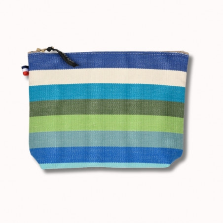 Cette trousse à maquillage, 13 x 18 cm, fabriquée à partir de nos toiles espadrille, en 100% coton issu de l'agriculture biologique, a été créée et confectionnée dans notre atelier situé dans le Sud-Ouest, dans le respect des tissages traditionnels basques.