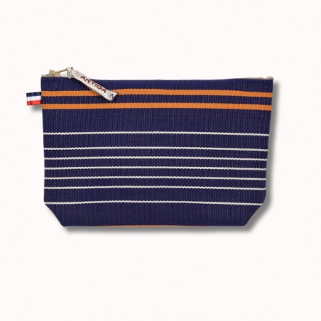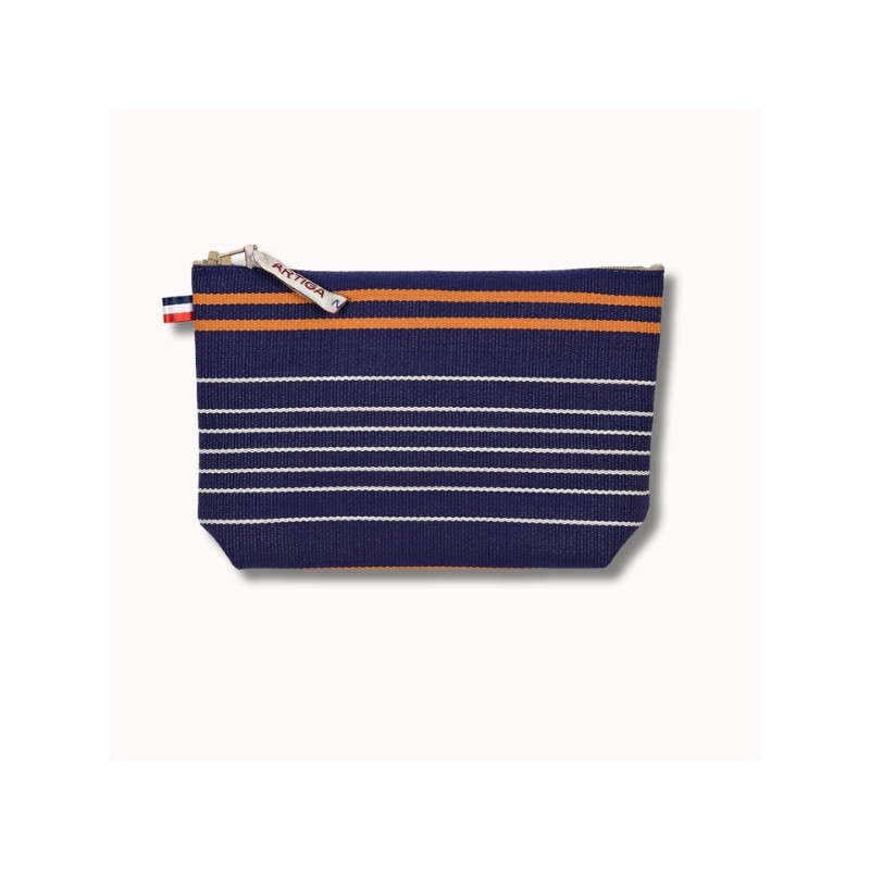 La trousse à maquillage Sauvelade Marine a été pensée pour accompagner le quotidien avec praticité et élégance. Réalisée en toile espadrille, une matière emblématique du Sud-Ouest reconnue pour sa robustesse, elle offre une excellente tenue dans le temps et un style authentique. Son design rayé associant bleu marine, ocre et écru confère à cette trousse une allure intemporelle, facile à assortir.