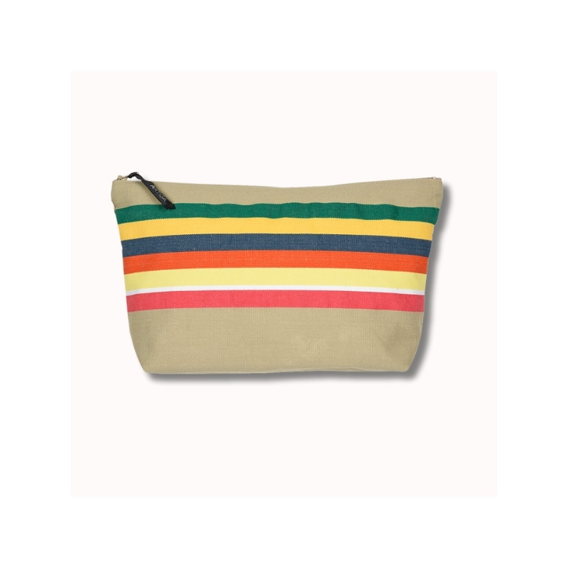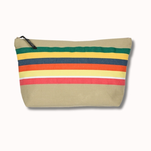 Cette trousse de toilette, 19 x 30 x 7 cm, fabriquée à partir de nos toiles transat est composée de 100% coton issu de l'agriculture biologique et enduit à l'intérieur