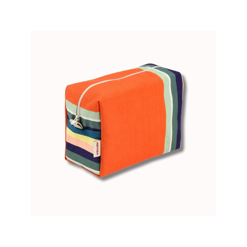 Confectionnée à partir de la toile transat Mauléon Orange, cette trousse se distingue par ses rayures emblématiques et ses teintes lumineuses évoquant l’été, les fruits mûrs et les grandes tablées conviviales. Elle s’inscrit pleinement dans l’univers « Déjeuner sur l’herbe », une collection joyeuse et solaire inspirée des pique-niques estivaux et de l’art de vivre en plein air.