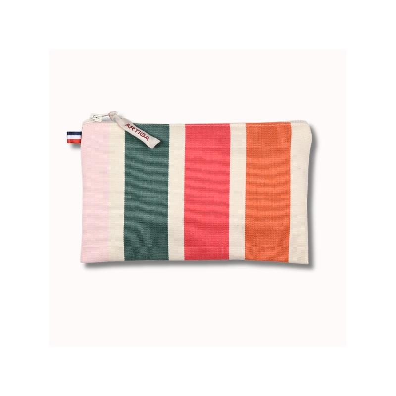 Sa fermeture zippée écrue avec tirette assure une ouverture fluide et une bonne tenue dans le temps, tout en apportant une finition soignée et discrète. Plate et souple, cette trousse se glisse facilement dans un sac à main, un cabas ou une valise.