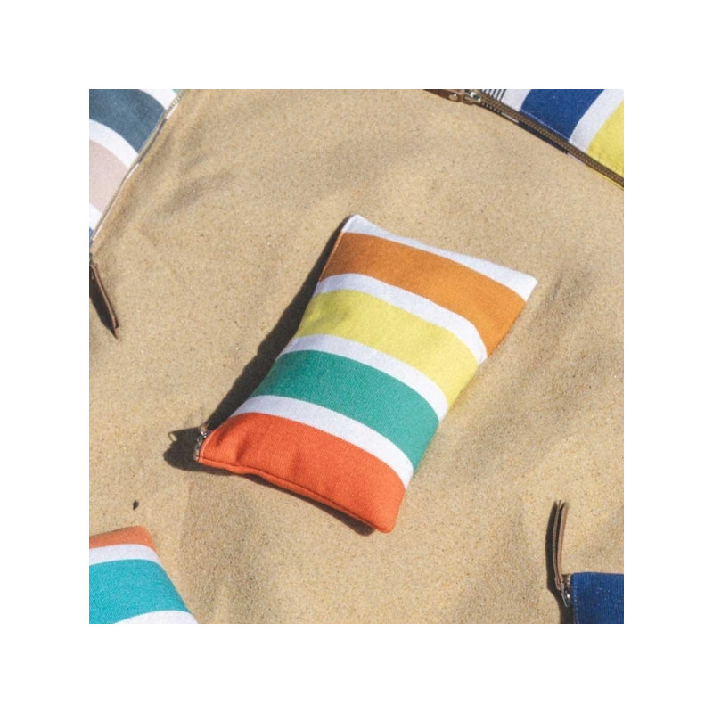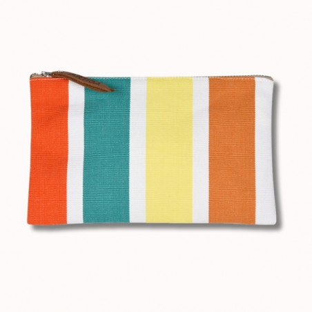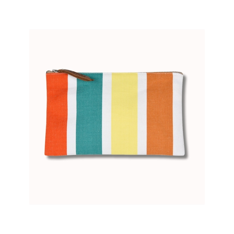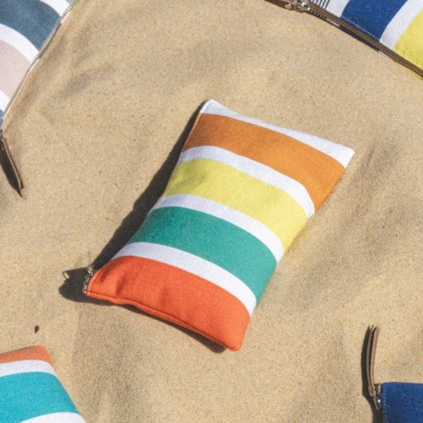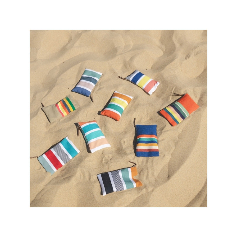 Cette trousse plate petit modèle, 12 x 20 cm, fabriquée à partir de nos toiles transat, en 100% coton issu de l'agriculture biologique, a été créée et confectionnée dans notre atelier situé dans le Sud-Ouest, dans le respect des tissages traditionnels basques.
