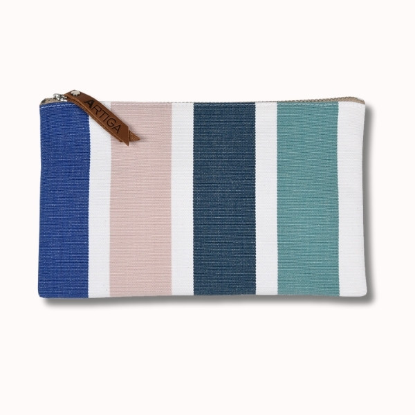 Cette trousse plate petit modèle, 12 x 20 cm, fabriquée à partir de nos toiles transat, en 100% coton issu de l'agriculture biologique, a été créée et confectionnée dans notre atelier situé dans le Sud-Ouest, dans le respect des tissages traditionnels basques.
