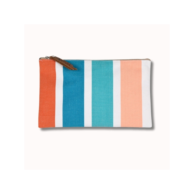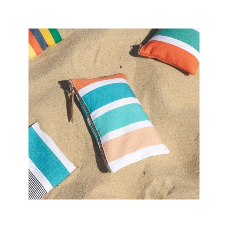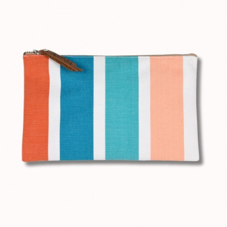 Cette trousse plate petit modèle, 12 x 20 cm, fabriquée à partir de nos toiles transat, en 100% coton issu de l'agriculture biologique, a été créée et confectionnée dans notre atelier situé dans le Sud-Ouest, dans le respect des tissages traditionnels basques.