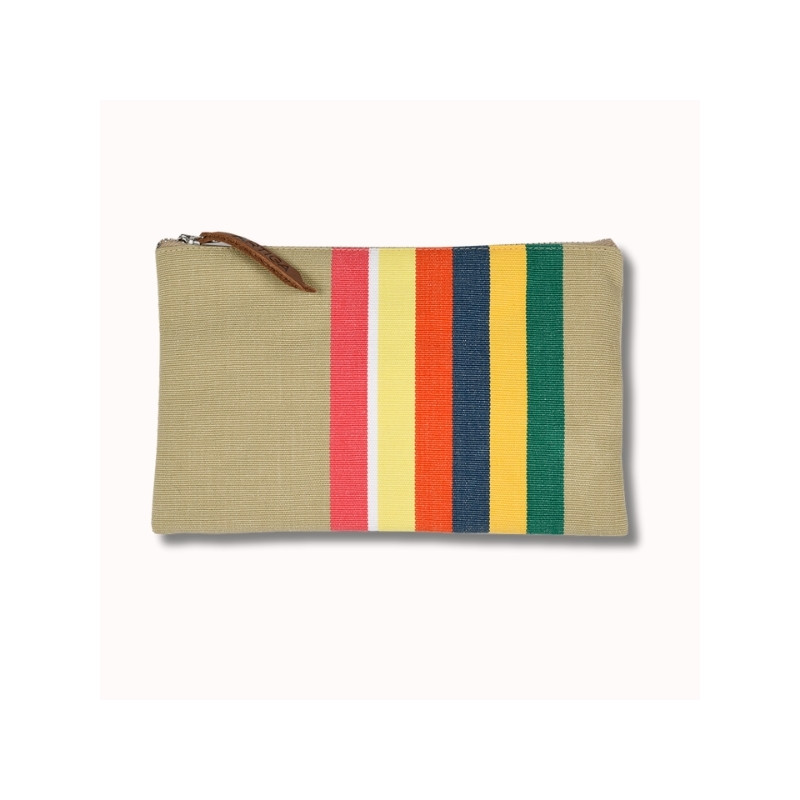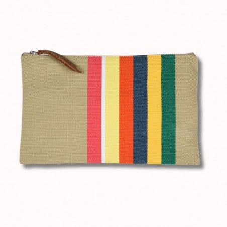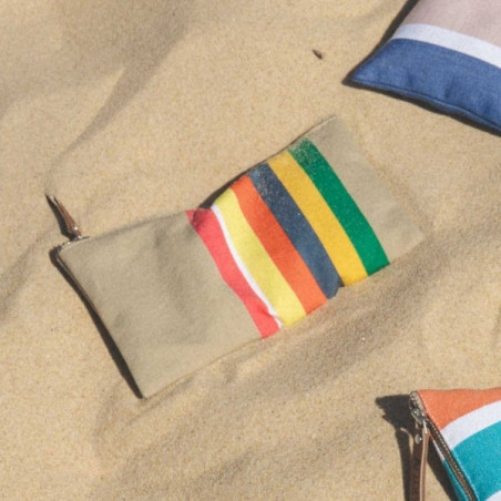 Cette trousse plate petit modèle, 12 x 20 cm, fabriquée à partir de nos toiles transat, en 100% coton issu de l'agriculture biologique, a été créée et confectionnée dans notre atelier situé dans le Sud-Ouest, dans le respect des tissages traditionnels basques.
