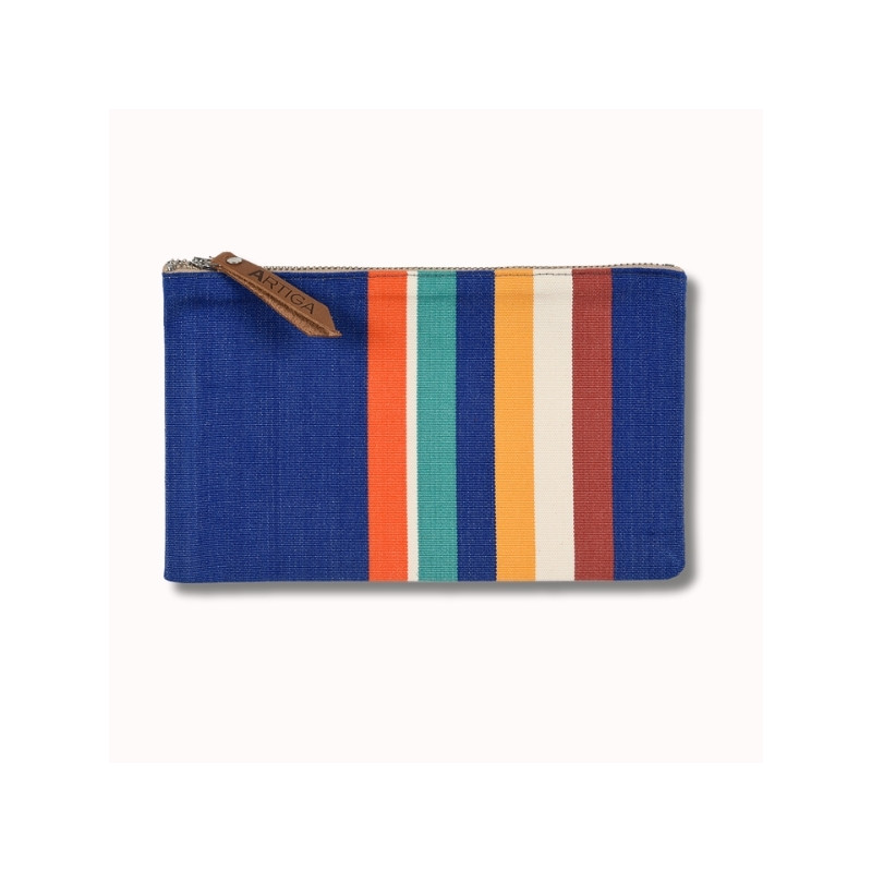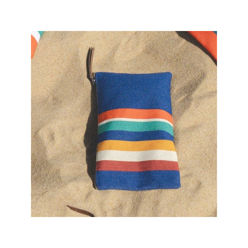 Cette trousse plate petit modèle, 12 x 20 cm, fabriquée à partir de nos toiles transat, en 100% coton issu de l'agriculture biologique, a été créée et confectionnée dans notre atelier situé dans le Sud-Ouest, dans le respect des tissages traditionnels basques.