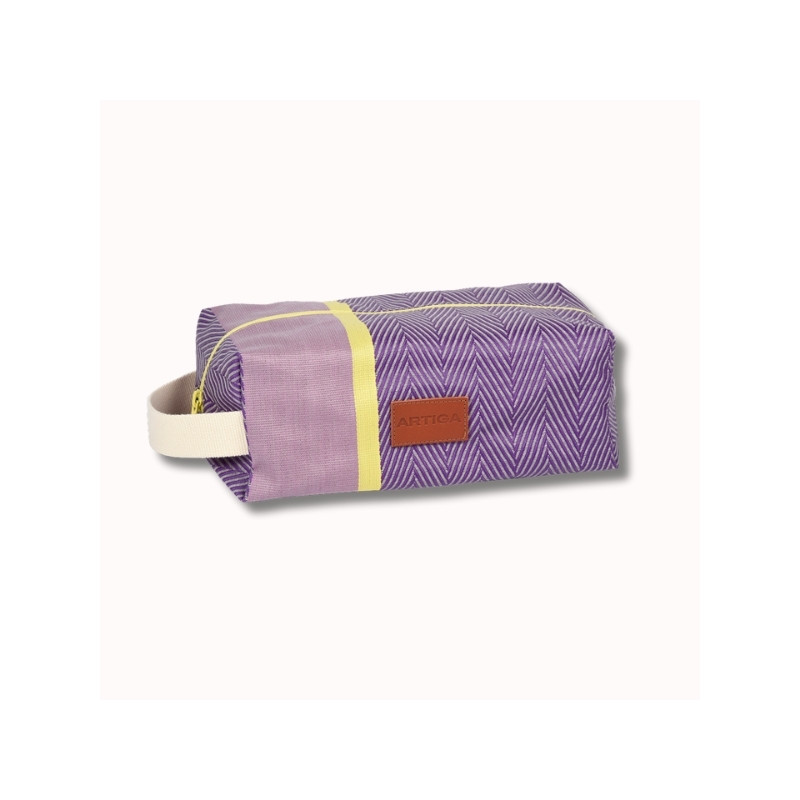 Le motif Chevron XL se distingue par un tissage travaillé associant chevron et bande reps, apportant relief et caractère à la matière. Le coloris parme, doux et lumineux, confère à cette trousse un style moderne, tendance et estival. La fermeture à glissière sur le dessus assure un accès facile et sécurisé, tandis que l’anse sur le côté permet une prise en main pratique et un transport aisé.