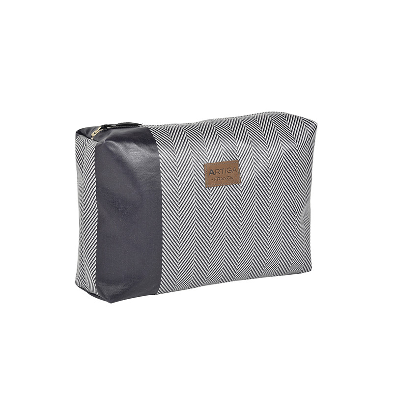 La trousse Andrea Artiga est une trousse de toilette grand format faite en toile coton avec traitement imperméable et ciré .