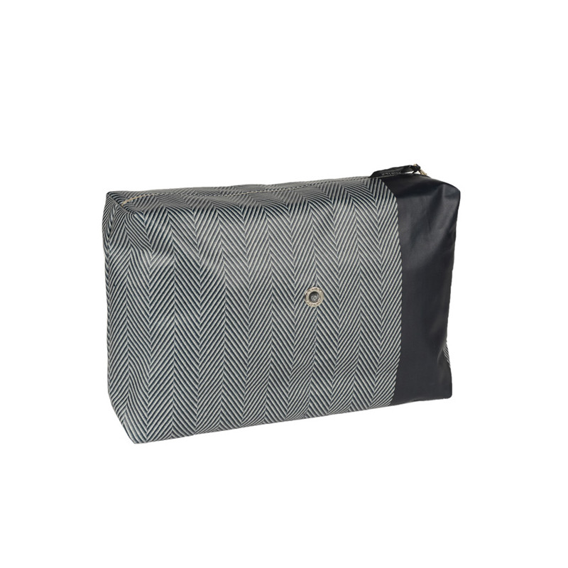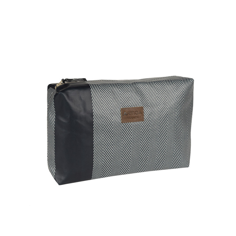 Cette trousse de toilette grand format Chevron Brique, 20 x 30 x 8 cm, en toile 100% coton avec traitement imperméable et ciré, a été créée et confectionnée dans notre atelier situé dans le Sud-Ouest, dans le respect des tissages traditionnels basques.