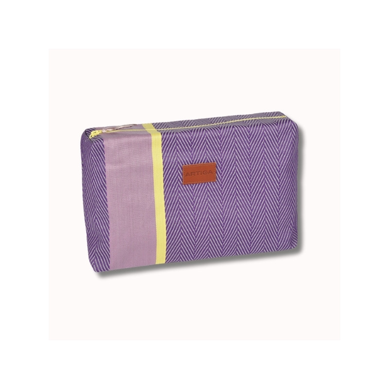 Son motif Chevron XL se distingue par un tissage travaillé mêlant chevron et bande reps, apportant du relief et une identité graphique forte. Le coloris parme, à la fois doux et lumineux, donne à cette trousse un esprit moderne, tendance et estival. La fermeture à glissière sur le dessus assure une ouverture facile et une bonne sécurité du contenu.